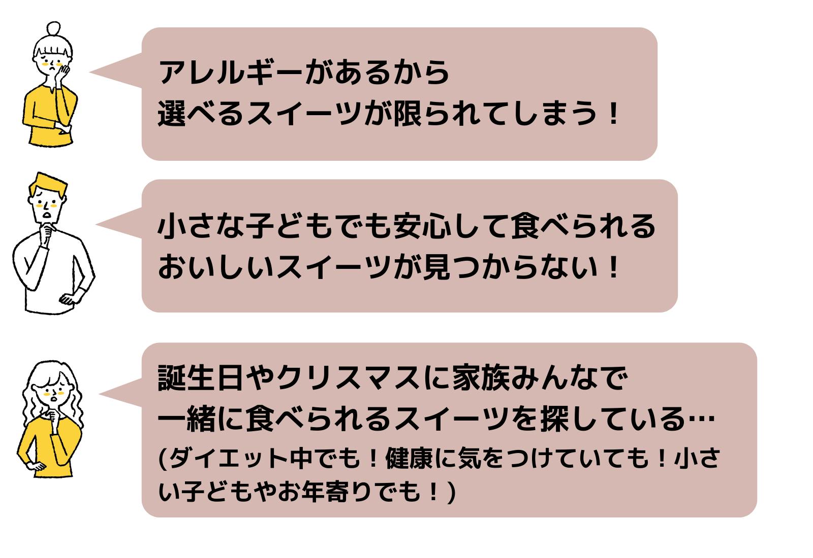 食物アレルギーを持つお子さまが増えている一方で、卵・小麦・乳製品・砂糖不使用で作られているロースイーツの存在は、ほとんど知られていません。